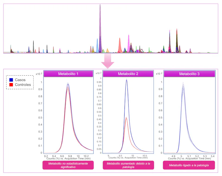 Todos sabemos que la glucosa elevada es un indicador de diabetes o el colesterol de riesgo cardiovascular: son ejemplos de metabolitos utilizados como biomarcadores. Se trata de moléculas pequeñas, sustratos y productos de la actividad de proteínas y sus alteraciones respecto a los valores medios en individuos sanos, que pueden indicar la presencia de una enfermedad.